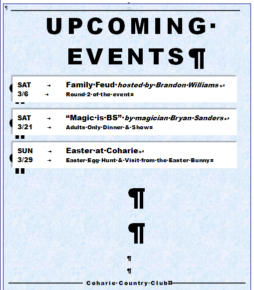 Upcoming Events from the Social Committee Mar 6 Written By Randy Wiggins Here is a calendar of events planned by the social committee Randy Wiggins